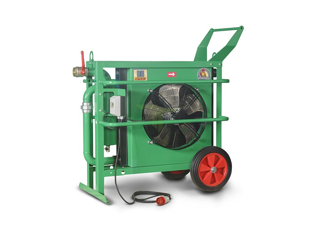 Mobilní elektricky ovládaný dochlazovač DBE odstraňuje kondenzát a olej ze stlačeného vzduchu, zabraňuje tak navlhnutím abraziva v tryskacím zařízení, hadicích a trysce. Zvyšuje se tím výkon tryskání a snižují se náklady na údržbu. Tento systém odděluje kondenzát s účinností 95%