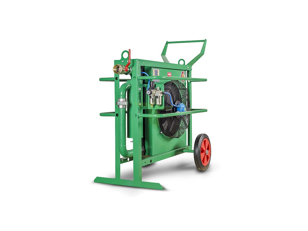 Mobilní elektricky ovládaný dochlazovač DBP odstraňuje kondenzát a olej ze stlačeného vzduchu, zabraňuje tak navlhnutím abraziva v tryskacím zařízení, hadicích a trysce. Zvyšuje se tím výkon tryskání a snižují se náklady na údržbu. Tento systém odděluje kondenzát s účinností 95%
