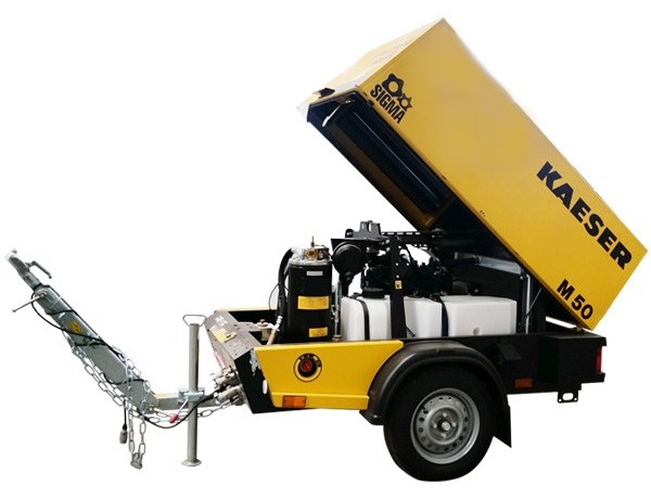 Výkonný a úsporný kompresor Kaeser M 50 s výkonem 5,2 m3/min. Využívá se převážně při mobilním tryskání ocelových konstrukcí, kamenných, cihlových ale také dřevěných ploch. Je vhodný také pro pohod různých pneumaticky ovládaných zařízení jako jsou sbíjecí / vrtací kladiva, zemní protlačovací rakety a jiné. Kompresor vyniká nízkými náklady na provoz, kdy se jeho spotřeba při plném zatížení pohybuje v ozmezí od 8 – 10 l/hod.