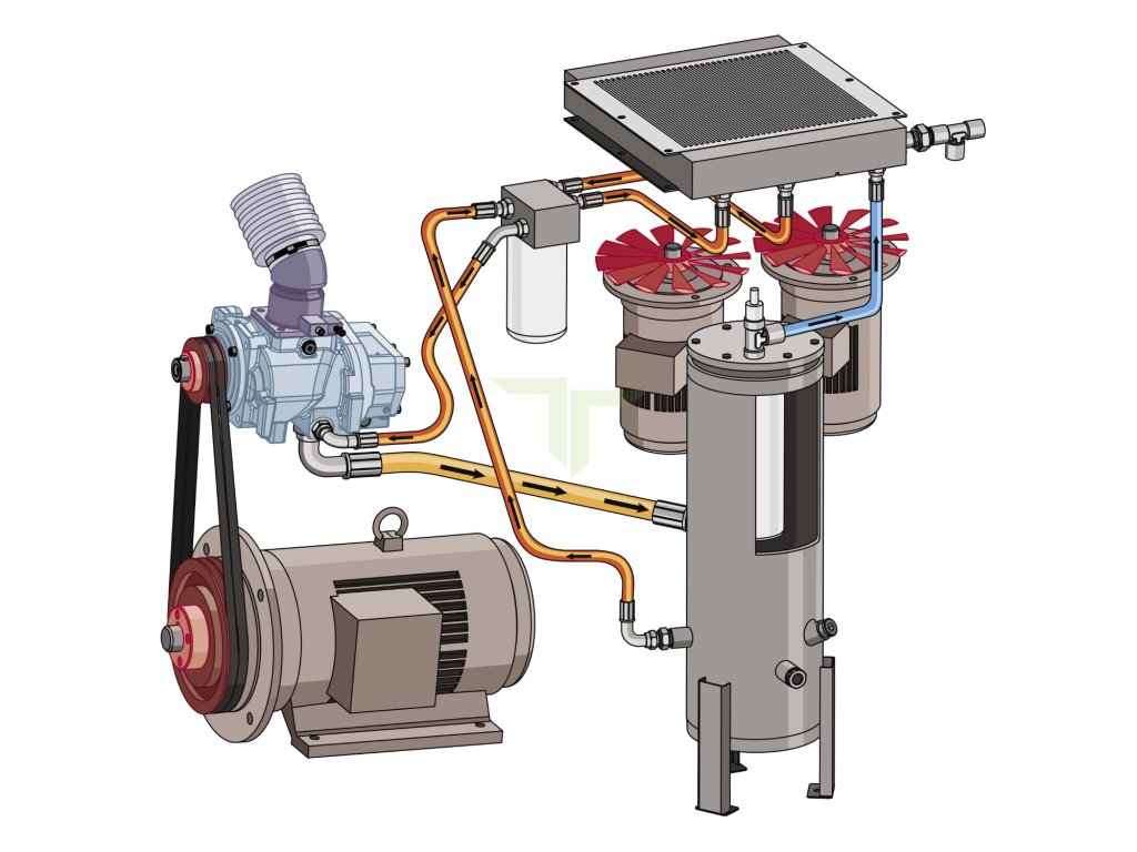 Šroubový element Šroubový blok vyroben nejmodernějšími technologiemi. Když se šroubovice otáčí proti sobě, směs vzduchu a oleje pod vlivem nadměrného tlaku vyplňuje mezery mezi sebou. Je tak zajištěna dlouhá životnost, jelikož se mezi sebou nedotýkají. |