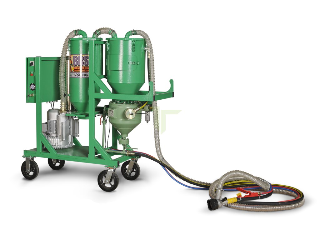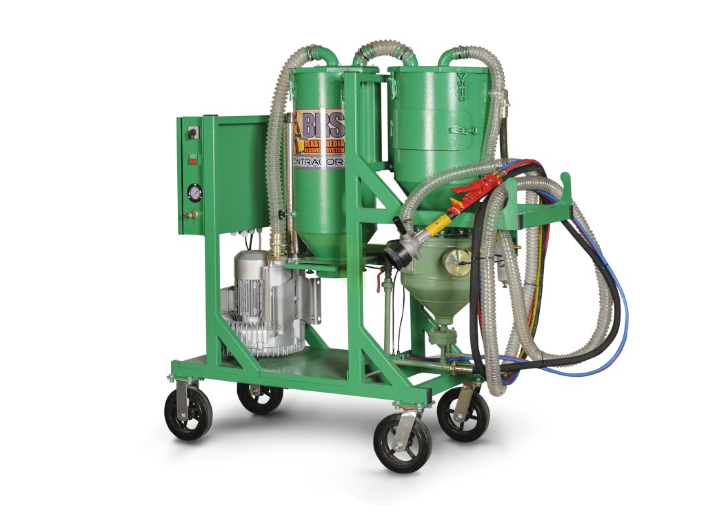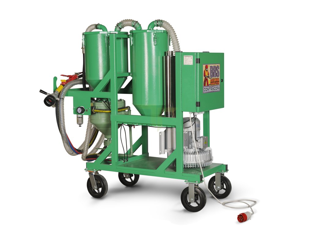 Profesionální tlaková pískovačka BRS-2 s odsáváním pro bezprašné a účinné tryskání. Proces tryskání probíhá v uzavřeném systému s opětovným získáváním abrazivního materiálu. Ovládání zajišťuje pneumatický ventil se spínacími kleštěmi, které jsou umístěny u odsávacího koše. Tento systém ovládání je velmi efektivní a šetří náklady.